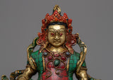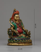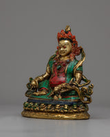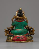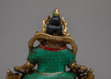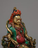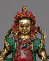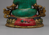 Crafted with meticulous attention to detail, this statue showcases the artistry of brasswork. Its intricate design captures the essence of Dzambhala, the deity of wealth and prosperity. The vibrant inlays of turquoise, coral, and blue lapis add depth and meaning to this exquisite piece.