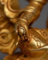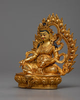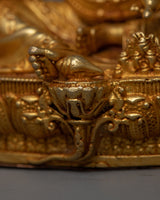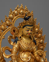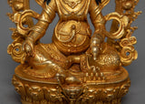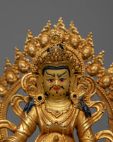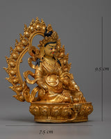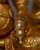 The magnificent statue of the respected Tibetan Buddhist deity known for bestowing wealth, abundance, and success upon followers is the Copper Dzambhala Deity Statue. This machine-made statue, meticulously crafted, embodies the spirit of Dzambhala's holy presence and beneficent energy. Crafted from copper and adorned with a dazzling 24k gold plating, it radiates a sense of luxury and spiritual grandeur, rendering it a magnificent focal point for any hallowed area or altar.