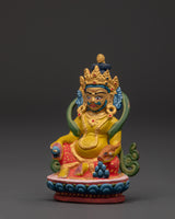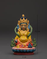 Dzambhala is a protective deity associated with wealth and prosperity. Many forms and traditions are associated with this wealthy deity, but he is usually depicted as yellow in color and holding a mongoose in his left hand. This statue has accurate traditional iconography and fine details.