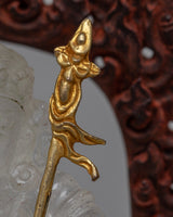 The statue, which is supported by an intricately detailed copper para (base), strikes a harmonious balance between the sublime transparency of crystal and the grounded elegance of metal. The copper base, with its artistic design, adds stability and another layer of aesthetic appeal to the crystal Namtoshe. The design of the statue combines spiritual symbolism with artisanal beauty.