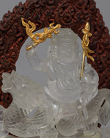 Look at our Crystal Stone Namtoshe Statue, a work of art where celestial artistry meets earthly craftsmanship. This transcendent piece, exquisitely carved from the purest crystal, captures the essence of Namtoshe, the Buddhist deity representing wealth and fortune. The crystal, which is known for its clarity and luminosity, emits an aura of abundance, transforming this statue into a beacon of prosperity and light.