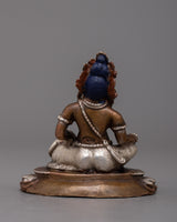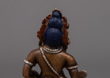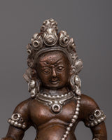 The Dzambhala Copper Oxidized Statue, which represents the god of riches and charity, is a monument to success and plenty. This machine-made statue is only 6 cm tall, but it already has a strong sense of grandeur and holiness. With its silver coating and corroded copper body construction, it exudes an air of spiritual significance