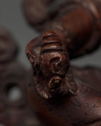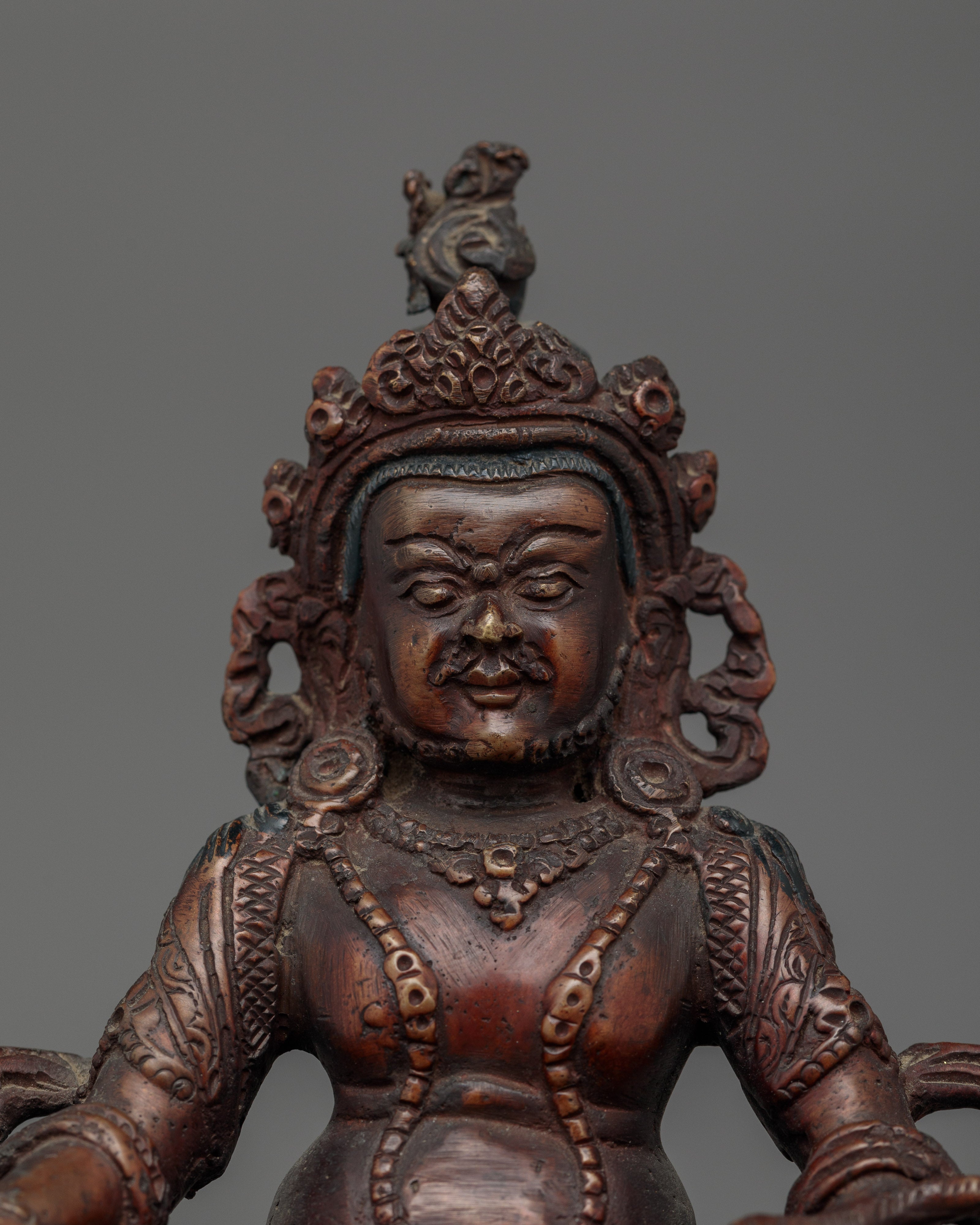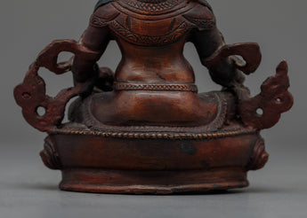 Introducing our Dzambhala Oxidized Small Handmade Statue, skillfully carved in Patan, Nepal. Crafted from quality oxidized copper, this amazing object perfectly captures the rich legacy of Nepalese metalworking. Dzambhala, who represents wealth and prosperity, is shown in a calm, authoritative position. Elaborate details and an antique polish give the figure a timeless spiritual depth.