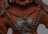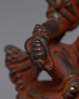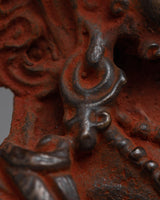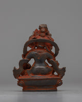 We are proud to present our Dzambhala Wealth Deity Statue, which is a beautifully carved representation of abundance and prosperity on oxidized brass. This magnificent figure, which stands 9.5 cm tall, is a potent representation of prosperity and luck in Tibetan Buddhism.