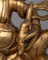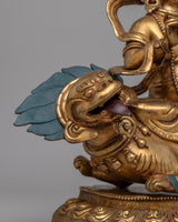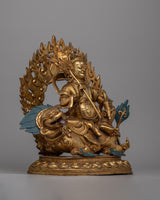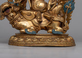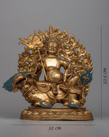 In Buddhist tradition, the statue of the god Vaishravana is a profound symbol of wealth, prosperity, and protection. This handcrafted copper statue, which was created with great attention to detail, is a symbol of spiritual significance and heavenly favor. Its gold-plated finish elevates its status as a holy object of reverence by adding a hint of grandeur.