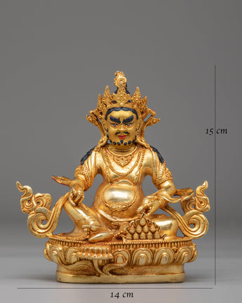 This Handmade Dzambhala Statue of Wealth is a crafted representation of the revered deity associated with abundance, prosperity, and protection in Tibetan Buddhism. Standing 15 cm tall and 14 cm wide, and weighing 0.76 kg, this statue is made from copper, plated with 24k gold, and hand-painted with acrylic color, giving it the divine energy of wealth and good fortune.