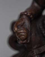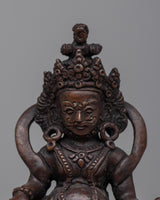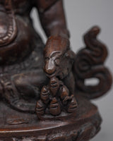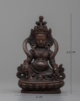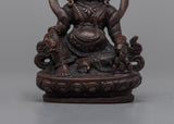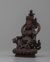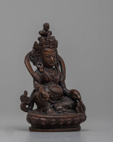 Measuring 9.5 cm in height and weighing 0.188 kg, the Jambhala God of Wealth Statue is an exquisite handcrafted artwork made of oxidized copper. The statue, which is made of oxidized copper, has a profound spiritual significance and a feeling of divine presence. This statue pays great attention to detail in its depiction of Jambhala, who is adored in Tibetan Buddhism as the deity of wealth and prosperity.