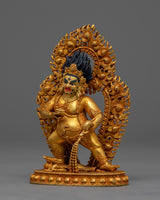 Presenting a machine-made black Dzambhala statue, a representation of spiritual wealth and abundance. This statue is a fascinating addition to any altar or sacred space, measuring 12 cm in height and 8 cm in breadth. It was meticulously crafted with attention to detail. Due to its superb electro-gold-plated finish and copper body construction, this statue exudes a sense of divine beauty and luxury.