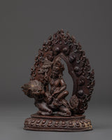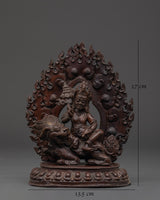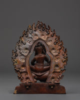 The Oxidized Copper Namotshe is a traditional Tibetan ceremonial symbol that can enhance your spiritual practices and create a sacred space. Learn about its potent spiritual essence. This handcrafted artifact, measuring 17 cm in height and 13.5 cm in width, is constructed from solid oxidized copper, which lends it an aged, magical quality full of ancient energy. The Namtshe is a crucial focal point for any altar, shrine, or meditation space, as it is regarded in Tibetan Buddhism as a representation of enlightenment, protection, and heavenly power.