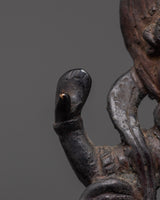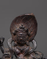 Dzambhala is known for bestowing blessings of financial stability and spiritual wealth to those who seek it. This statue’s detailed craftsmanship and serene expression capture his powerful presence, making it an ideal addition to any meditation space, altar, or spiritual decor. The oxidized copper finish adds a unique, antique-like appeal, enhancing its spiritual energy and aesthetic value.