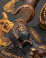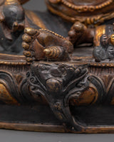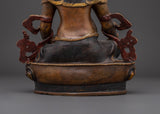 This gold-plated Dzambhala statue, weighing 3.86 kg, possesses a substantial and revered presence, making it an ideal choice for creating a sacred space that fosters financial growth and spiritual reflection. The oxidized copper base complements the old look while keeping the potent connotation of plenty. This rich fortune statue is not only a devotional object, but it also emits electromagnetic magnetism, attracting prosperity, charity, and karmic abundance into your life and home.