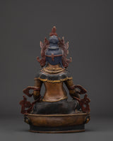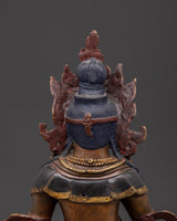 This Rich Fortune Dzambhala Statue is a striking depiction of the Buddhist deity of prosperity and abundance. Standing 33cm tall and made of oxidized copper with gold plating, this religious figure represents prosperity, fortune, and protection from poverty. Dzambhala is renowned in Vajrayana Buddhism for his ability to alleviate financial difficulties and bestow both worldly and spiritual wealth upon practitioners. This statue's meticulous design and strong presence make it suitable for personal altars, meditation spaces, or ceremonial offerings.