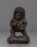 This Dzambhala, Protector of Wealth and Prosperity statue, with its stunning antique finish crafted on iron, is a strong sign of abundance and protection. Standing 7 cm tall and 4.5 cm wide, this elaborately made figurine depicts Dzambhala, a revered Buddhist deity famed for bestowing worldly and spiritual wealth while protecting devotees from financial problems. The tiny shape makes it an ideal complement to any sacred space, home, or workspace, gradually improving your surroundings with its spiritual importance.