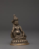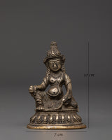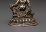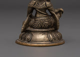 Dzambhala represents the ability to overcome financial difficulties and manifest wealth through spiritual practice. Worshipping or meditating with this statue encourages charity and removes impediments to riches. This brass Dzambhala, ideal for those seeking prosperity and spiritual progress, serves as both a beautiful element and a sacred object of devotion. Its small size makes it easy to put, and its traditional style pays homage to centuries of Tibetan Buddhist artistry and symbolism.
