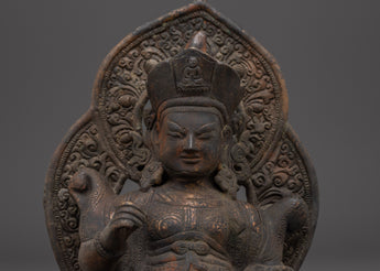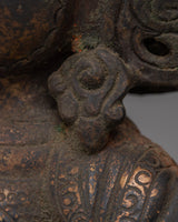 Expertly handcrafted with intricate detail, the statue captures Vaishravana’s regal armor, commanding posture, and symbolic attributes that reflect his authority, generosity, and steadfast guardianship. The fine artistry is rooted in the Himalayan tradition, blending devotional significance with visual beauty. This piece serves as both a sacred talisman and a striking work of Buddhist art, ideal for practitioners, collectors, or as a meaningful spiritual gift.