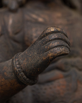 This Vaishravana Handcrafted Statue, standing 24.5cm tall and 17cm wide, embodies the revered Guardian King of the Northprotector of the Dharma and granter of both spiritual and material prosperity. Known as Namtoshe in Tibetan tradition, Vaishravana is celebrated for his steadfast protection, ability to remove obstacles, and blessings that foster abundance in all aspects of life. Crafted with a copper body and antique finish, the statue’s majestic form reflects exceptional Himalayan artistry and spiritual significance. Ideal for sacred altars, meditation spaces, or spiritual art collections, this statue brings powerful energy, protection, and prosperity to your environment, inspiring confidence and harmony on your path.