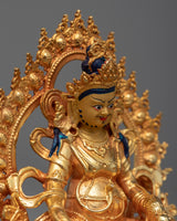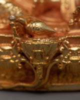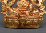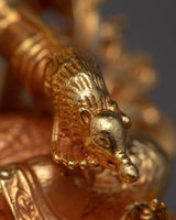 Crafted with modern tools, the machine-made statue provides intricate detailing and accuracy while expressing Dzambhala's benign and giving attributes. The copper body serves as a solid basis for the statue, representing the enduring nature of wealth and success.
