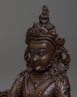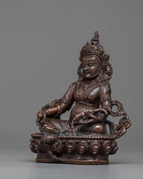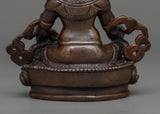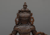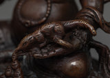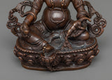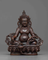 The Jambhala Statue, which is handcrafted with care and precision, captures the essence of Jambhala, the Buddhist deity of wealth and success, with its exquisite workmanship and craftsmanship. The piece's oxidized copper body gives it more depth and personality, which heightens both its aesthetic appeal and spiritual importance.
