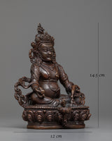 Presenting the Wealth Deity Jambhala Statue, an exquisitely sculpted representation of success and abundance on an oxidized copper body. This magnificent statue, which stands 14.5 cm tall and weighs 0.85 kilogram, radiates prosperity and blessings.