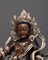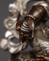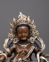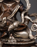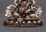 The statue's oxidized copper adds depth and shine to its appearance, while its silver-plated finish contrasts gracefully with it. This Wealth Dzambhala Statue is a meaningful addition to any collection or area, combining traditional symbolism with contemporary craftsmanship. It is perfect for individuals who wish to attract success and financial stability into their lives.