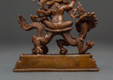 This Tibetan Dzambala monument, handcrafted by expert artisans, is adorned with a wealth of symbolic intricacy. The oxidized copper finish lends it a vintage appearance, enhancing its visual and dynamic appeal. Dzambala, the Buddhist wealth deity, is frequently invoked in pujas and meditations to remove financial impediments and promote generosity. Whether used in holy rituals or as a meaningful decorative element, this White Dzambala spiritual statue connects your space to the energies of wealth, success, and compassionate abundance.