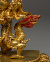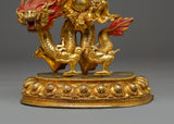 Kubera's Buddhist Sculpture depicts the ruler of riches and the rescuer of the north. Dzambala's benediction and the worth of his practice are worldwide. It helps us to minimize or reduce all calamities and difficulties while increasing all good fortune and pleasure. In Hinduism, Kubera's purpose from the gods was to make believers affluent. This gold-gilded Dzambhala statue is ideal for Vajrayana meditation.