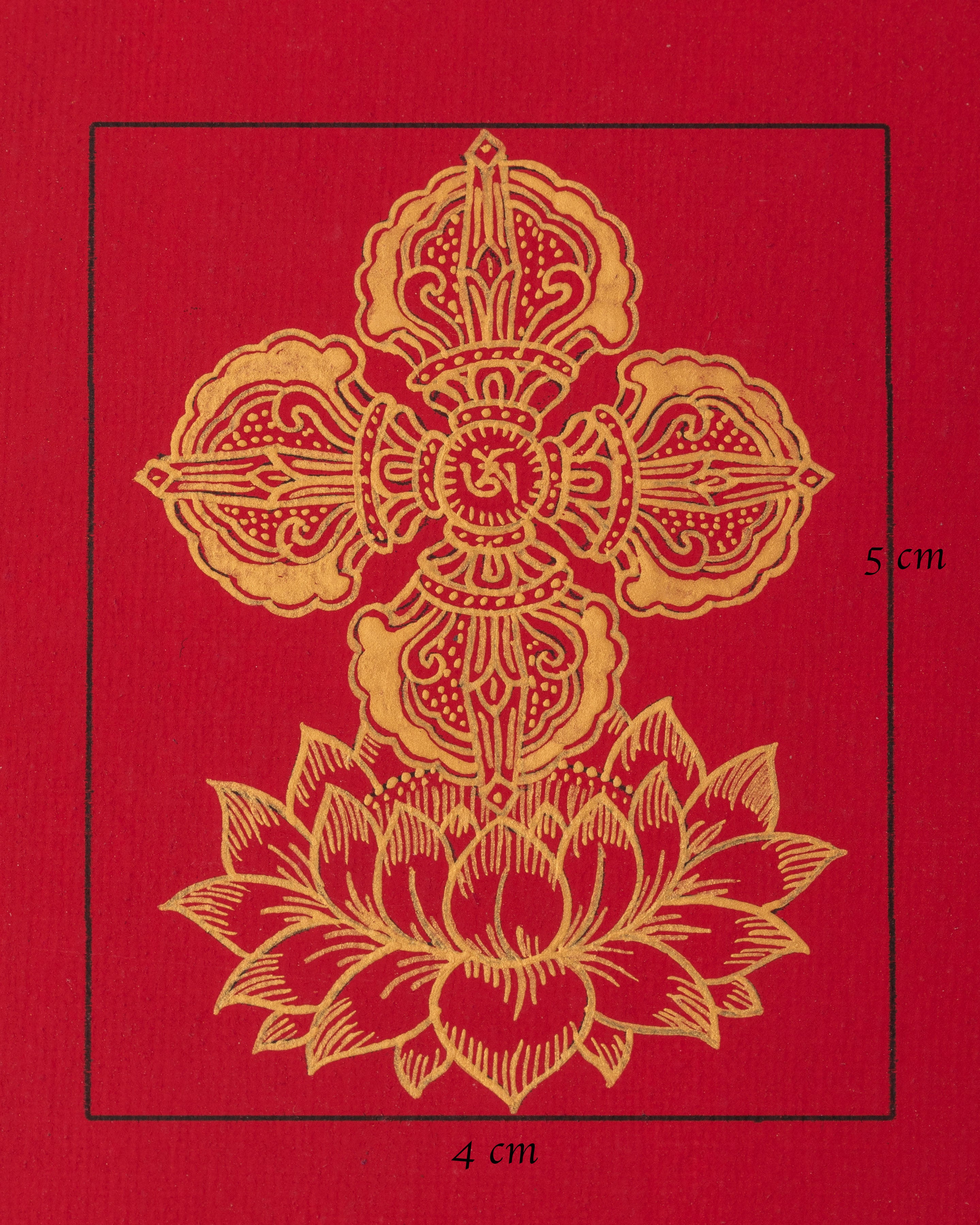 The Bishwo Vajra Thangka is a sacred Buddhist symbol artwork representing protection, stability, and the unshakable nature of enlightened wisdom. Hand-painted on cotton canvas using acrylic colors and highlighted 24k gold detailing, this miniature thangka measures 5cm in height and 4cm in width, making it ideal for lockets, portable altars, or sacred jewelry settings. Each piece is crafted with care, following traditional Tibetan thangka painting techniques.