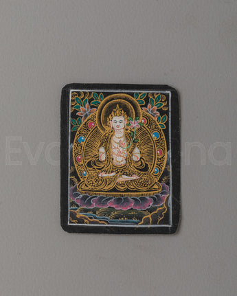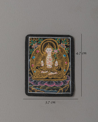 This Jnanasattva Manjushri Thangka for Locket is an ideal piece for those seeking spiritual growth, wisdom, and protection. Whether worn during meditation, daily activities, or spiritual practice, this locket serves as a constant reminder of Manjushri's wisdom. The 24k gold detailing and cotton canvas base make it a piece of jewelry, perfect for those who wish to carry the blessings of wisdom wherever they go. It's an ideal gift for spiritual seekers and those on the path to enlightenment.