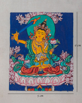 Manjushri Handmade Thangka For Locket | Spiritual Manjushri Artwork