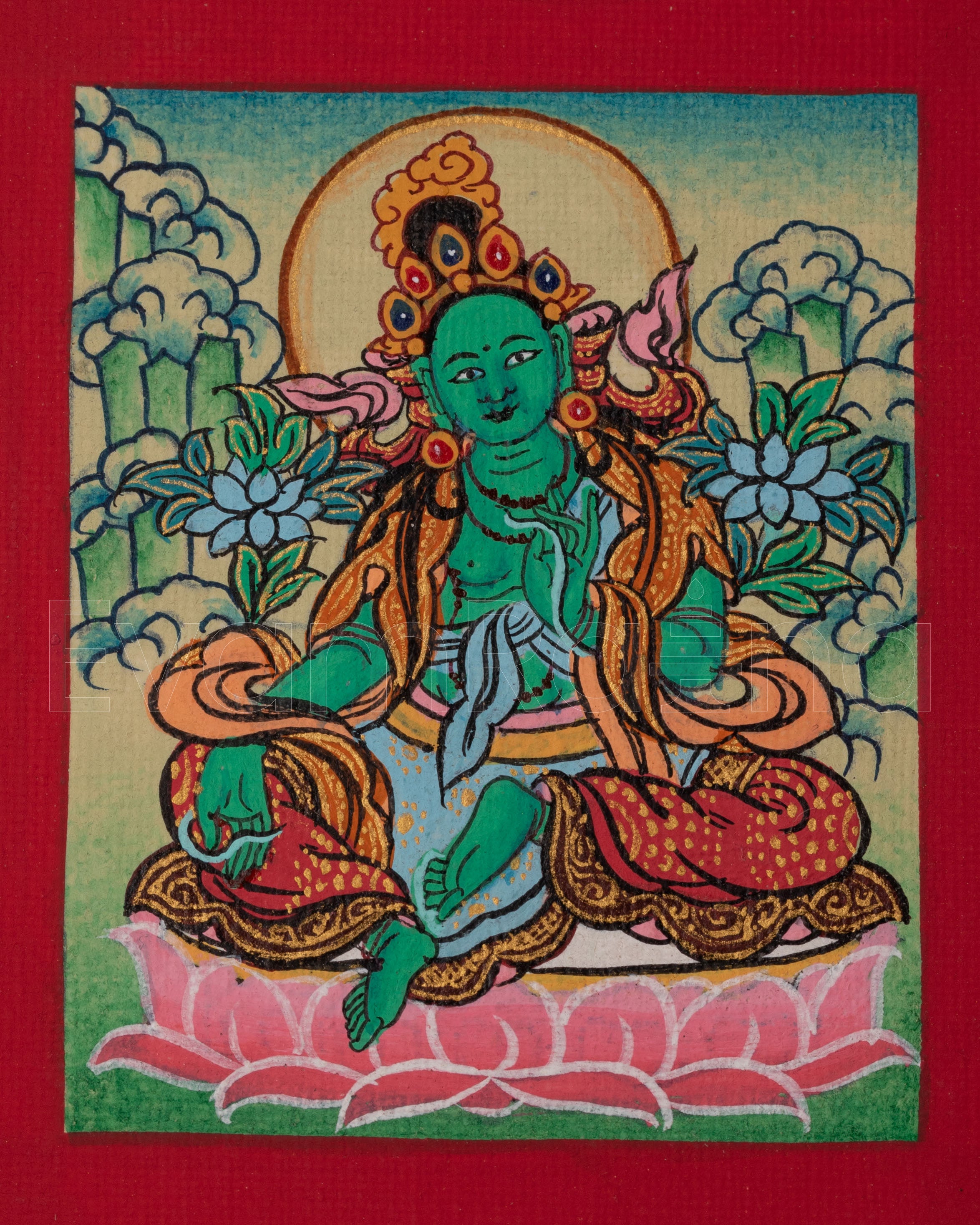 Tibetan Green Tara Thangka for Locket | Sacred Tara Artwork for Spiritual Protection
