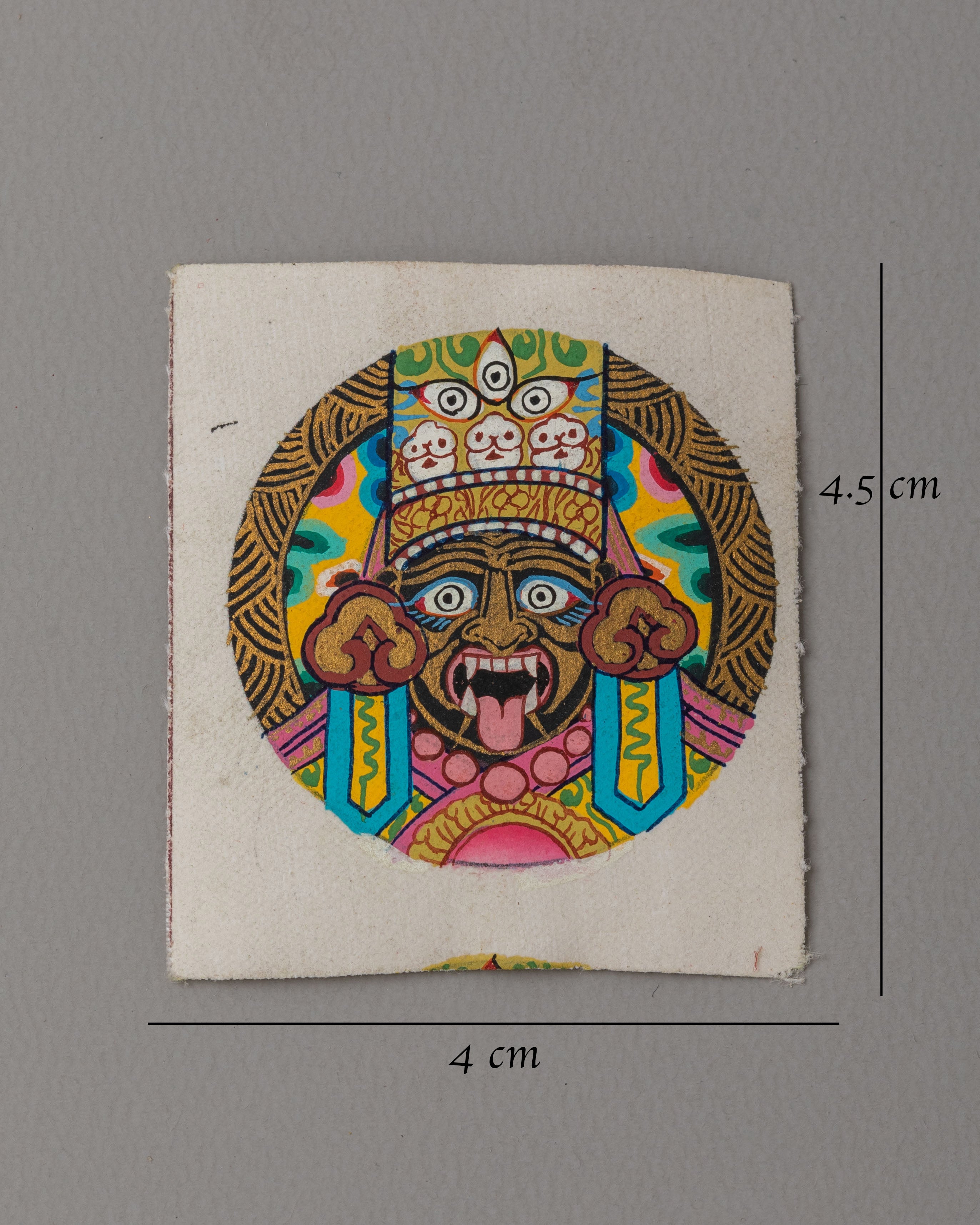 This Traditional Zashi Lhamo Thangka for Locket measures 4.5 cm in height and 4 cm in width. It is painted on cotton canvas using acrylic colors and with 24k gold. Its small size allows it to be worn as a locket, carried in a pocket, or placed on a personal altar for meditation, prayer, or daily spiritual practice.