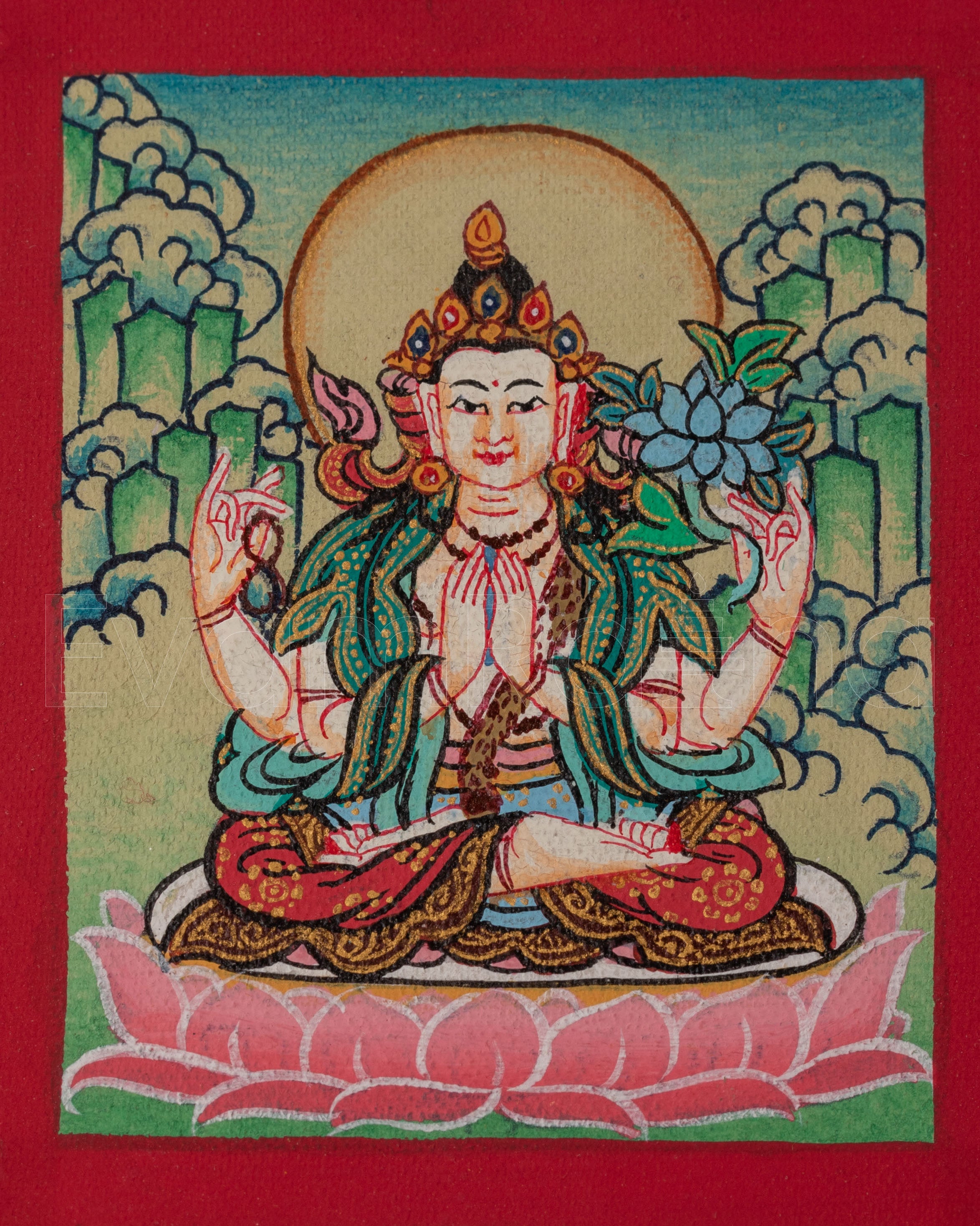 Traditional Chenrezig Thangka for Locket | Small Avalokiteshvara Artwork