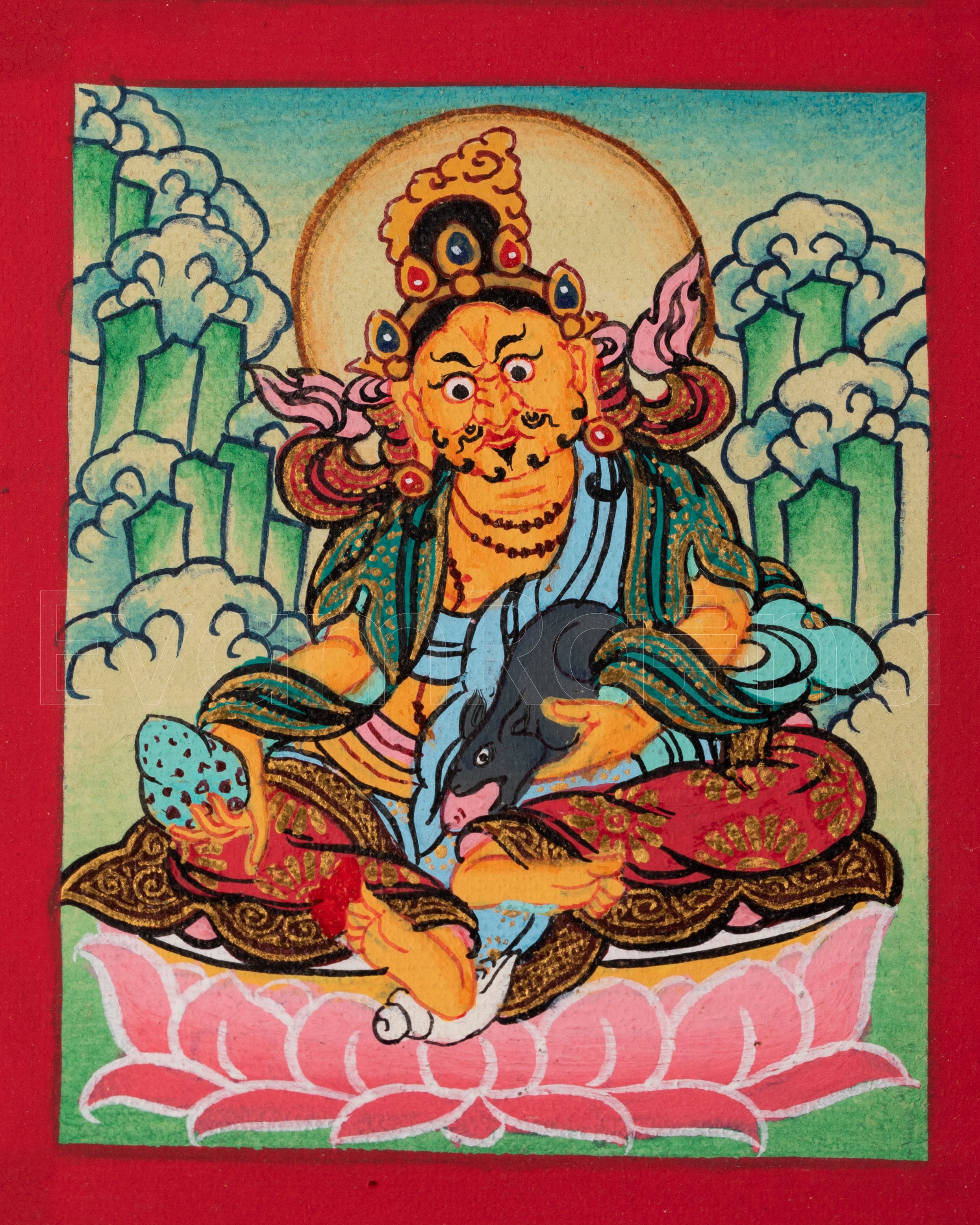 Handcrafted Traditional Dzambhala Thangka for Locket | Symbol of Wealth and Prosperity