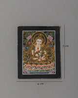 The Vajrasattva Thangka features the powerful figure of Vajrasattva in a meditative pose, with intricate symbolic details that represent the purifying and transformative powers of this revered deity. His posture, serene expression, and divine attributes are meticulously captured in this small-scale artwork, creating a sense of inner peace and spiritual elevation. The use of 24k gold in the detailing elevates the piece's sacred nature, making it not only a spiritual symbol but also a work of fine craftsmanship that enhances any jewelry.