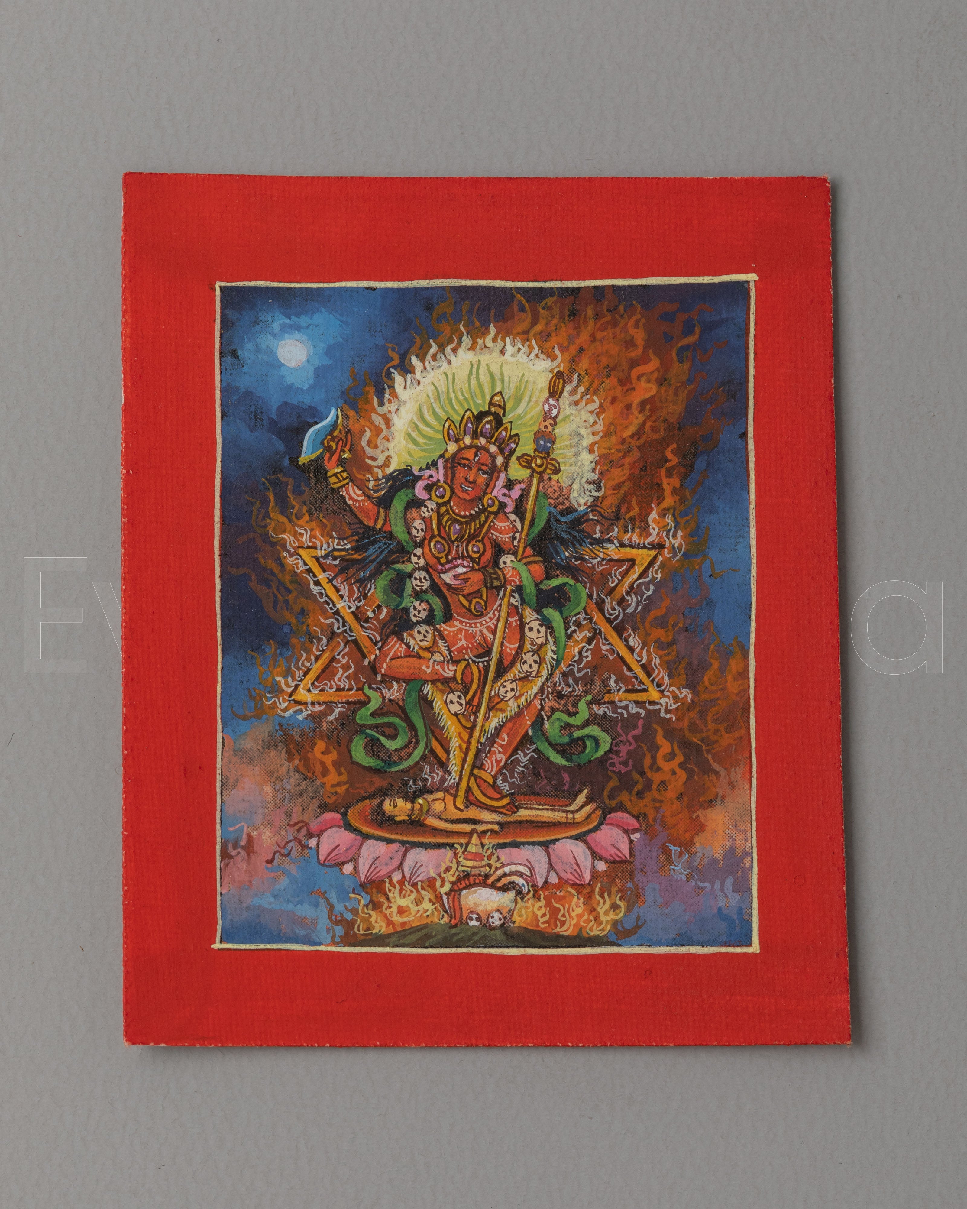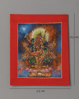 The Vajravarahi Thangka for Locket is a stunning, hand-painted piece on cotton canvas, featuring Vajravarahi, the fierce and protective Tibetan deity. With acrylic colors and 24K gold accents, this thangka is not just an art piece but a spiritual amulet that embodies the wisdom and compassion of Vajravarahi, who is revered for her power to remove obstacles and protect the faithful from harmful forces. Measuring 6.5 cm in height and 5.5 cm in width, this beautifully detailed artwork brings Vajravarahi’s protection into a wearable form, perfect for those seeking spiritual strength.