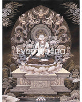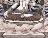 Presenting our magnificent High-Quality White Tara Thangka Print, a beautifully balanced fusion of spiritual resonance and artistic elegance. This Thangka print, painstakingly created with the use of cutting-edge Giclée printing technology, displays the soft glow of White Tara, the embodiment of kindness, peace, and longevity. The exquisite details, vivid colors, and museum-caliber finish evoke White Tara's heavenly presence while fostering a serene and graceful spiritual environment. A visual portal to enlightenment and inner peace is provided by the accurate reproduction of every subtlety and delicate feature. This Thangka Print is more than just a piece of art; it is a vehicle for the blessings of White Tara, promoting healing, compassion, and a strong bond with the path of enlightenment.