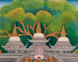 The Mother of Liberation Thangka Print portrays the revered deity White Tara, an embodiment of compassion, wisdom, and healing within Tibetan Buddhism. White Tara is depicted in a serene posture, seated gracefully upon a lotus throne, with eyes full of compassion and love. Her seven eyes symbolize her ability to perceive the suffering of sentient beings and her readiness to come to their aid. With one hand in a gesture of granting boons and the other in a gesture of fearlessness, White Tara offers solace and protection to her devotees, guiding them through the challenges of life towards spiritual liberation. Adorned with sacred ornaments and surrounded by an aura of divine light, she emanates a sense of peace and tranquility, inspiring practitioners to cultivate compassion and wisdom in their own lives. The Mother of Liberation Thangka Print serves as a powerful visual reminder of White Tara's boundless compassion and her unwavering commitment to the welfare of all beings, offering blessings of healing, protection, and spiritual liberation.