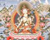 Embrace the enchanting ethereal beauty of White Tara through High-Quality Thank prints. White Tara is considered a deity of compassion, healing, and wisdom. The magnificent paint art is created with Giclee color on a cotton matt canvas with utmost care and devotion, showcasing the true detailing and vibrant colors which radiates the divine figure to life. With her graceful serene expression, the White Tara emanates a sense of inner peace and healing. This exquisite print is a magnificent representation of White Tara's divine qualities and offers a powerful connection to her essence.