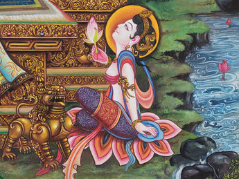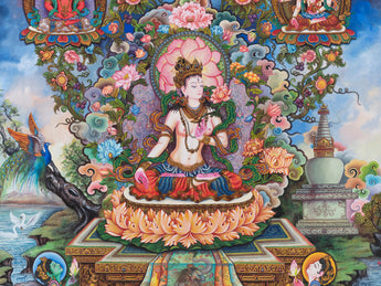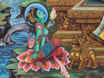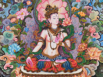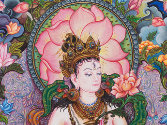 It goes without saying that every detail of a painting has a symbolic meaning. Regardless of your religious affiliation, a thangka can help you on your path to enlightenment, whether you practice Buddhism or have other religious convictions. Thangkas are paintings that depict deities with various iconographic elements and symbolism that encourage meditation on the teachings of the god they depict. Any thangka is intended to aid in the removal of the film of ignorance, which is a significant barrier to the road to enlightenment. The Thangka is revered as a holy item. They promote positivity, spread Buddhism's teachings, bring about peace, harmony, and oneness, and dispel any negative energy that may be there.