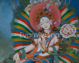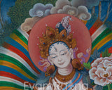White Tara Goddess Buddhism Thangka Print For Prayers | The Female Buddha Art Canvas