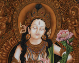 A Radiant Depiction of White Tara on Majestic Throne | High-Quality Canvas Print in Paubha Style
