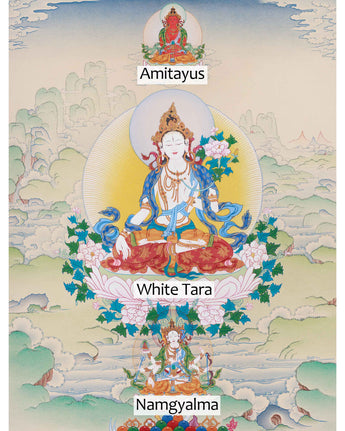 Buddhist Long-Life Deities: White Tara, Namgyalma, and Buddha Amitayus | Karma Gadri Artistry