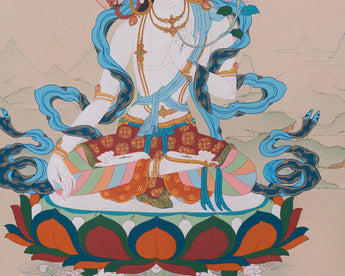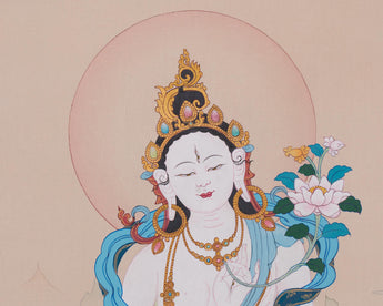 Female Buddhist White Tara Thangka | Symbol of Divine Protection and Peace