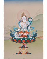 Sacred Female Deity White Tara Thangka | Symbol of Vitality & Long Life