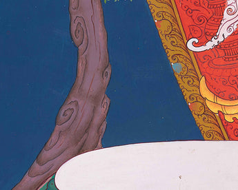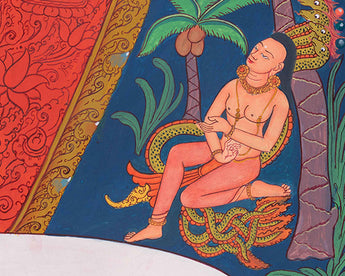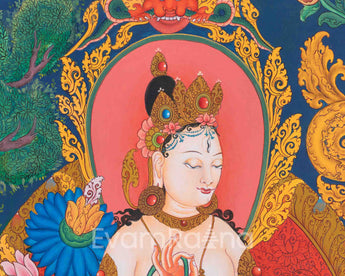 The Handpainted Goddess White Tara Thangka is a masterpiece of divine artistry, capturing the compassionate essence of the revered deity White Tara in exquisite detail. With each stroke of the brush, the image of White Tara comes to life on the canvas, radiating with serenity, grace, and healing energy. Adorned with vibrant colors and intricate patterns, the Thangka depicts White Tara in her resplendent form, seated gracefully on a lotus throne, with one hand extended in a gesture of granting blessings and the other holding a blooming lotus flower symbolizing purity and enlightenment. Her gentle countenance exudes compassion and wisdom, offering solace and guidance to all who gaze upon her sacred image. Devotees of White Tara turn to this Handpainted Thangka as a source of inspiration, empowerment, and spiritual nourishment, seeking her divine blessings for healing, longevity, and enlightenment on their journey towards awakening. As a symbol of divine grace and compassion, the Handpainted Goddess White Tara Thangka serves as a powerful reminder of the inherent potential for inner transformation and liberation within all beings.