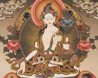 Tibetan White Tara Thangka | Female Bodhisattva Art | Wall Decors