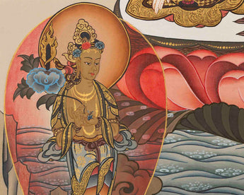 It goes without saying that every detail of a painting has a symbolic meaning. Regardless of your religious affiliation, a thangka can help you on your path to enlightenment, whether you practice Buddhism or have other religious convictions. Thangkas are paintings that depict deities with various iconographic elements and symbolism that encourage meditation on the teachings of the god they depict. Any thangka is intended to aid in the removal of the film of ignorance, which is a significant barrier to the road to enlightenment. The Thangka is revered as a holy item. They promote positivity, spread Buddhism's teachings, bring about peace, harmony, and oneness, and dispel any negative energy that may be there.