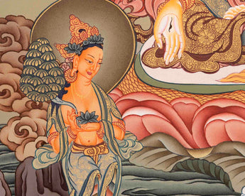 It goes without saying that every detail of a painting has a symbolic meaning. Regardless of your religious affiliation, a thangka can help you on your path to enlightenment, whether you practice Buddhism or have other religious convictions. Thangkas are paintings that depict deities with various iconographic elements and symbolism that encourage meditation on the teachings of the god they depict. Any thangka is intended to aid in the removal of the film of ignorance, which is a significant barrier to the road to enlightenment. The Thangka is revered as a holy item. They promote positivity, spread Buddhism's teachings, bring about peace, harmony, and oneness, and dispel any negative energy that may be there.