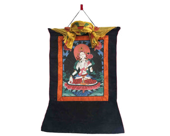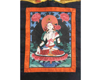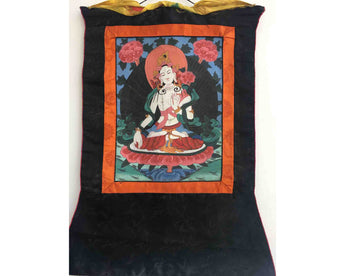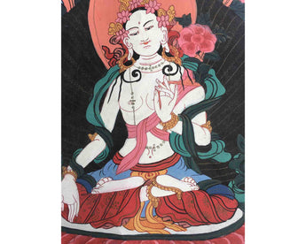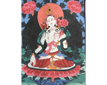 Vintage White Tara Thangka Painting: