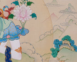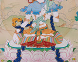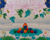 The White Tara 24-Inch Thangka, the Goddess of Compassion and Longevity, is hand-painted on cotton canvas. Made with natural stone colors and 24K gold, this artwork symbolizes spiritual purity and divine blessings of long life and healing. It follows the traditional Karma Gadri style, a hallmark of Tibetan sacred art, characterized by its harmonious composition and balanced design. We meticulously maintain the authenticity of this style at our studio, Enlightenment, ensuring each painting reflects the timeless beauty and spiritual depth associated with the Karma Kagyu lineage.